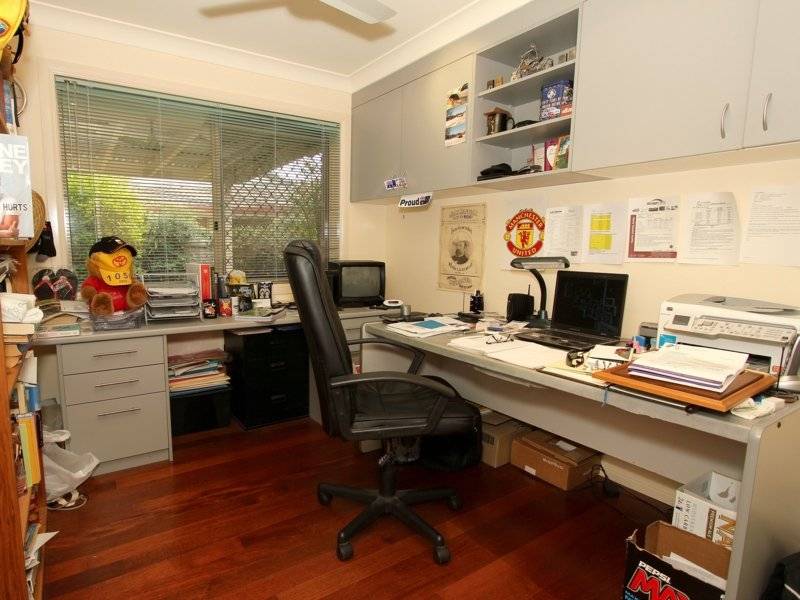 Floating timber floors feature throughout the living areas of this home—including the air-conditioned, open-plan formal living and dining. Here you'll find plenty of room to showcase your furnishings and treasured memories. Leading off the formal living are 2 bedrooms—including the air-conditioned master with en-suite + walk-in-robe, and the good-sized study with built-in cupboards, shelves and desk with twin drawers.