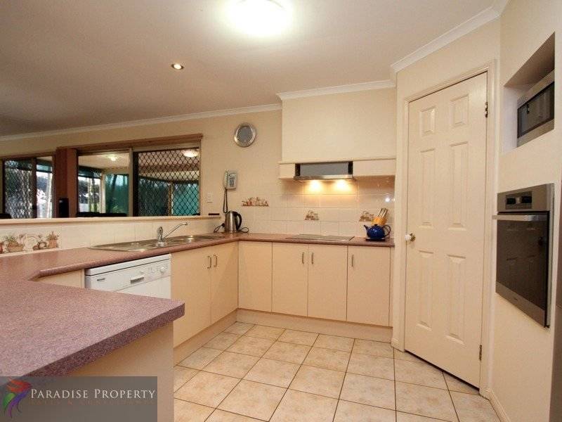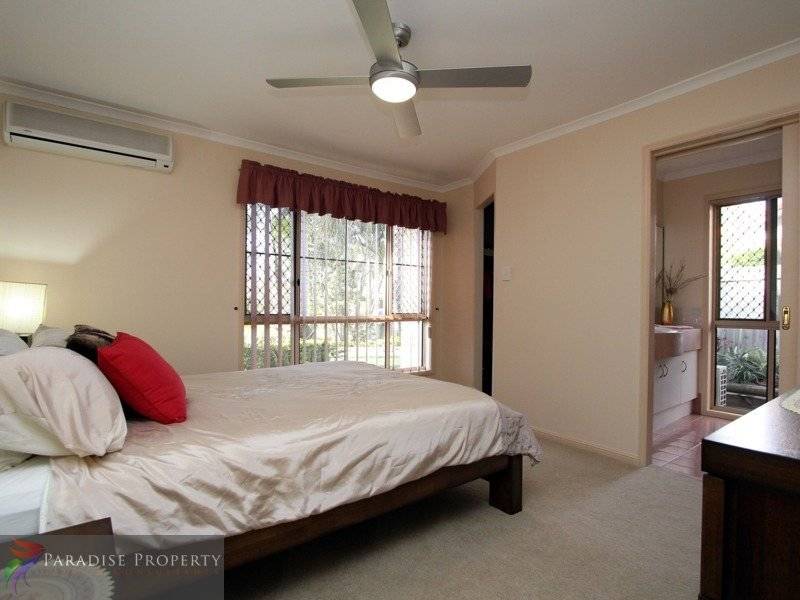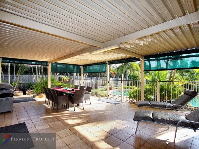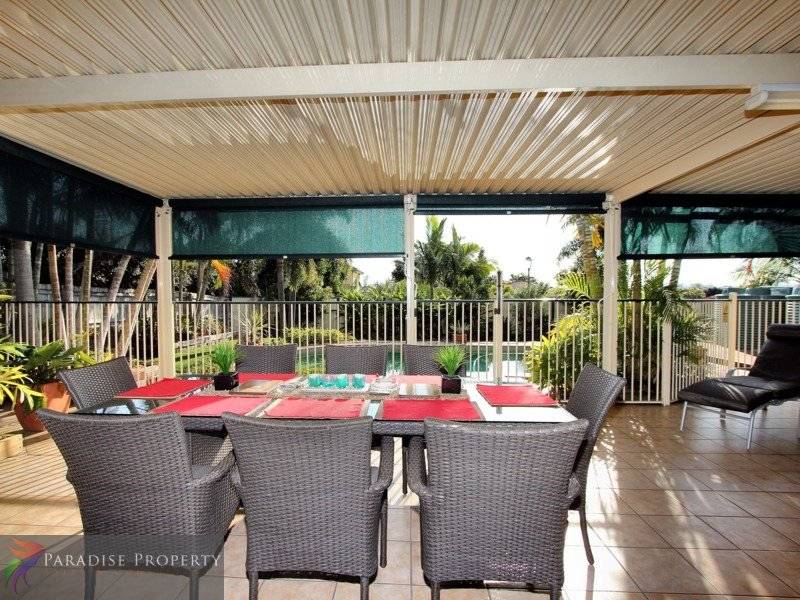 A massive patio extends from the casual living to provide an impressive outdoor entertaining area that overlooks well-established landscaped tropical gardens full of foxtail, bangalow and golden cane palms and a sparkling in-ground pool with poolside deck – just perfect for relaxation on a hot summer’s day. And, the patio’s retractable blinds offer the ideal setting for alfresco dining all year-round.