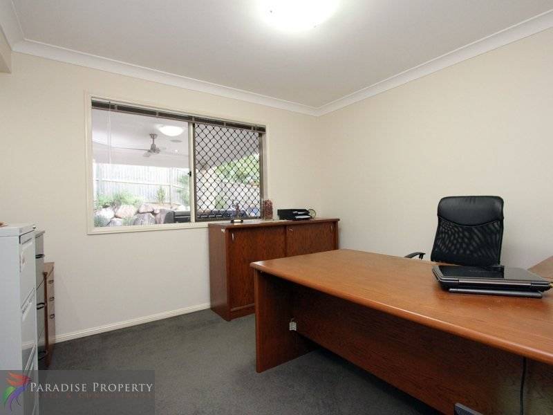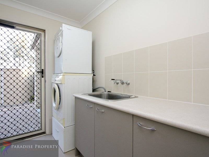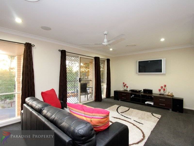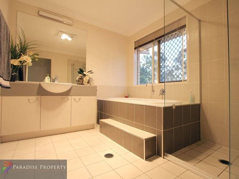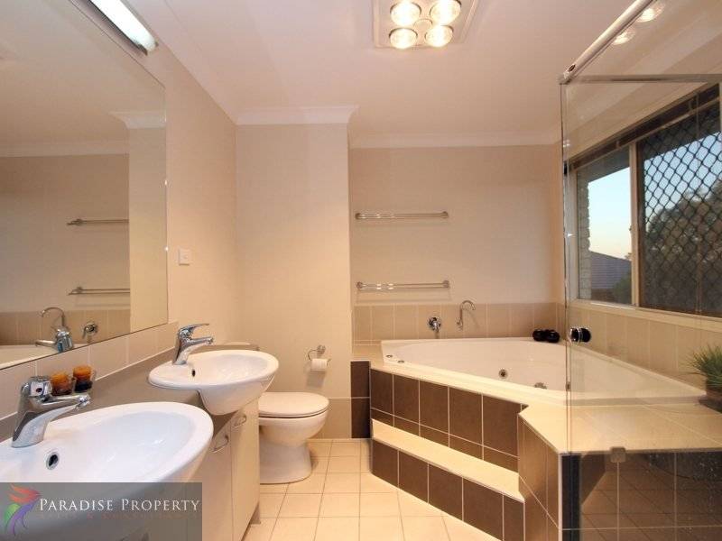 The spacious master bedroom has a big walk-in robe, and luxurious en-suite with double-vanity, shower and relaxing spa bath. The bedroom is wired for TV and there's plenty of room to set up the exercise bike or treadmill to work off those excess calories out of sight.