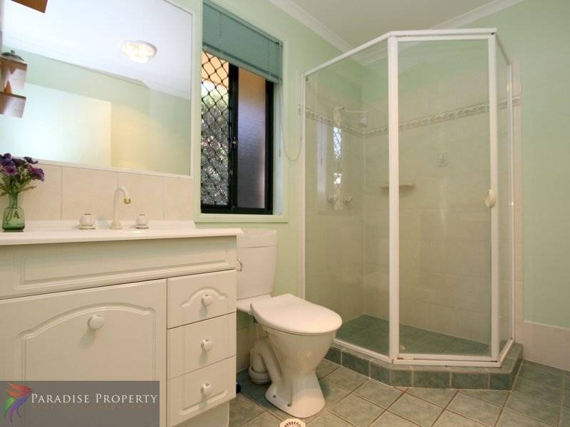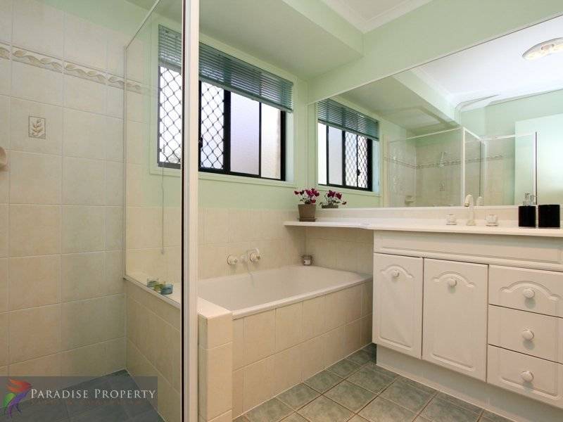 The good-sized master bedroom (with ceiling fan, en-suite + WIR) is located at the front of the house and offers privacy from the other 3 bedrooms (all with BIRs + ceiling fans).