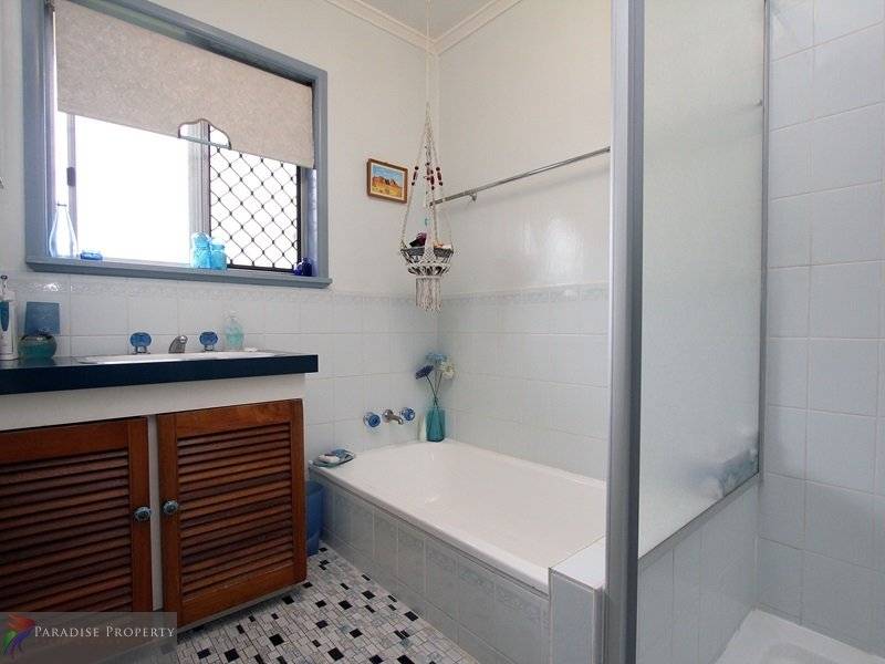 Offering 3 bedrooms – each with ceiling fans and natural airflow – one with a WIR and another with twin BIRs. And, all serviced by the main bathroom (with bath and shower) + separate toilet for added convenience.