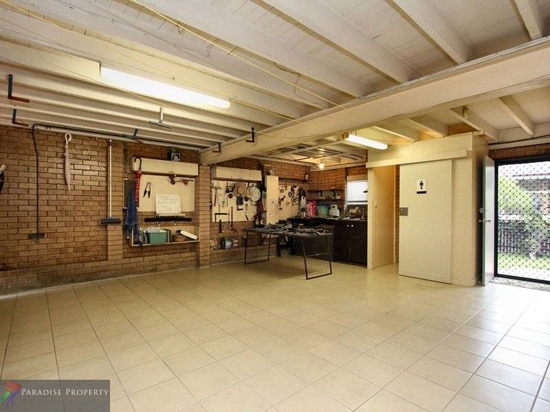The vast downstairs area is legal height and has been fully tiled throughout – offering secure parking for 2 vehicles and a massive rumpus area complete with room air-conditioner, extra storage, separate toilet and good-sized laundry. This whole area could easily be converted into a granny flat – offering dual occupancy for sub-letting or as extra living and bedrooms for the growing family.