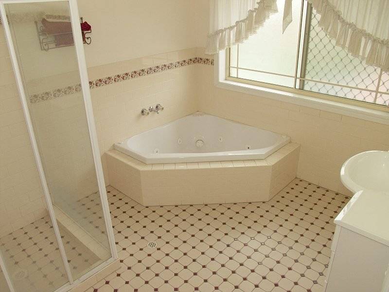 Upstairs are 4 bedrooms—all with built-ins—and air-conditioned master with huge walk-in robe and en-suite. Also the main bathroom has a spa bath for you to indulge in luxury or to heal those aches and pains.