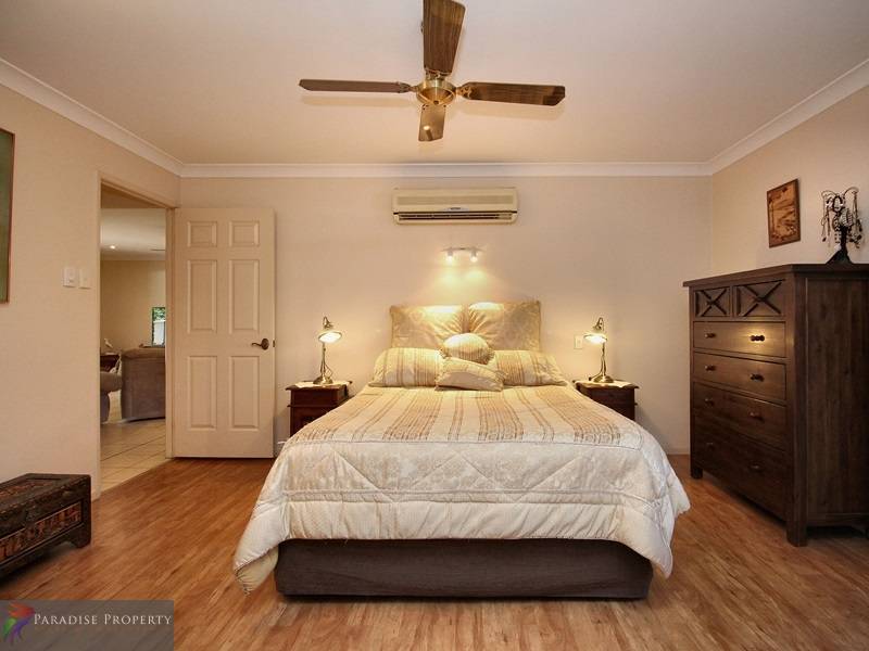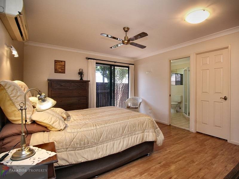 With 4 more bedrooms inside (3 with BIRs and all with ceiling fans) – the spacious air-conditioned master bedroom features timber-look vinyl floor coverings, WIR, en-suite and private deck.