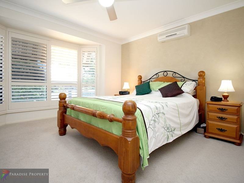 The air-conditioned master bedroom is located at the front of the home for added privacy. With quality plantation shutters, beautiful bay window, ceiling fan, tinted windows, near new carpet, WIR and stylishly renovated en-suite – with semi-frameless shower + beautiful vanity with soft-closing drawers.