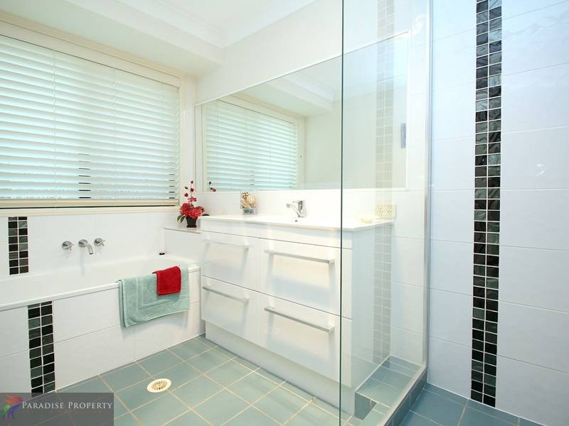 Off the casual living are 3 double-sized bedrooms (all with BIRs. ceiling fans and near-new carpet), a separate toilet and laundry + family bathroom – with semi-frameless shower, quality vanity and deep bath.