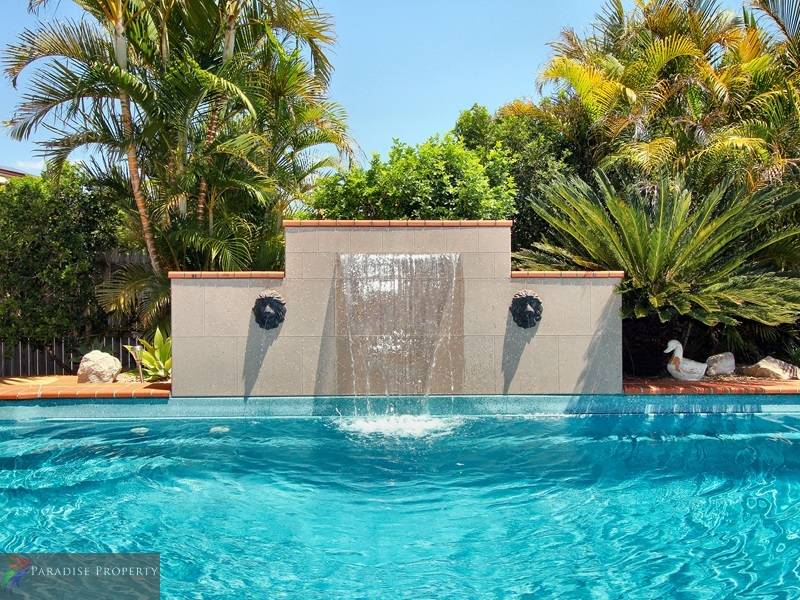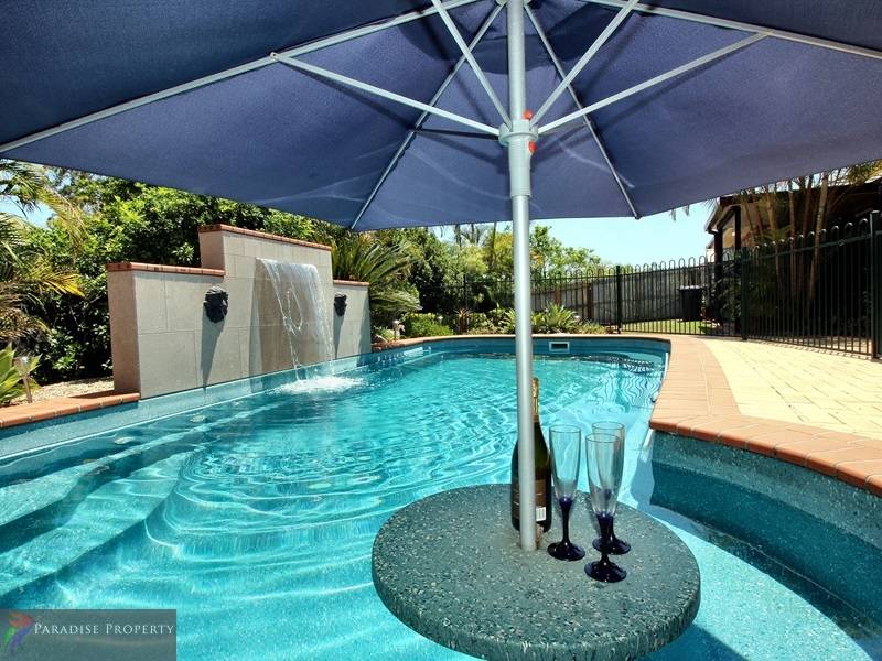 On these hot summer days nothing beats sitting in the pool under the shaded umbrella, relaxing with a cold drink and listening to the sound of the tranquil waterfall. Ah, the serenity…