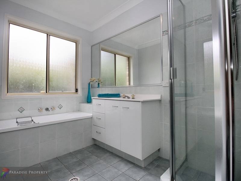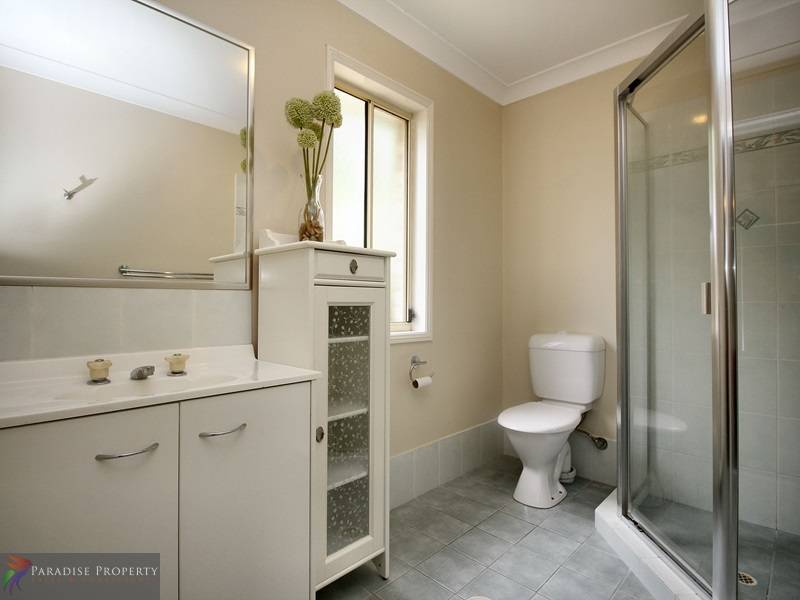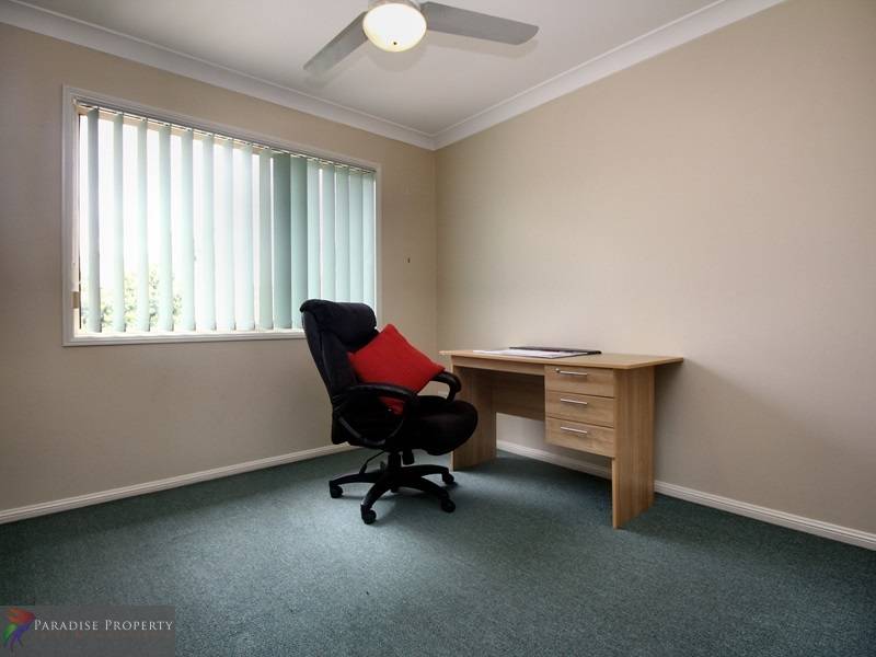 There’s 4 good-sized bedrooms (all with BIRs + ceiling fans). The master bedroom is at the back of the home for added privacy – with ceiling fan, WIR + en-suite with shower, vanity + toilet.