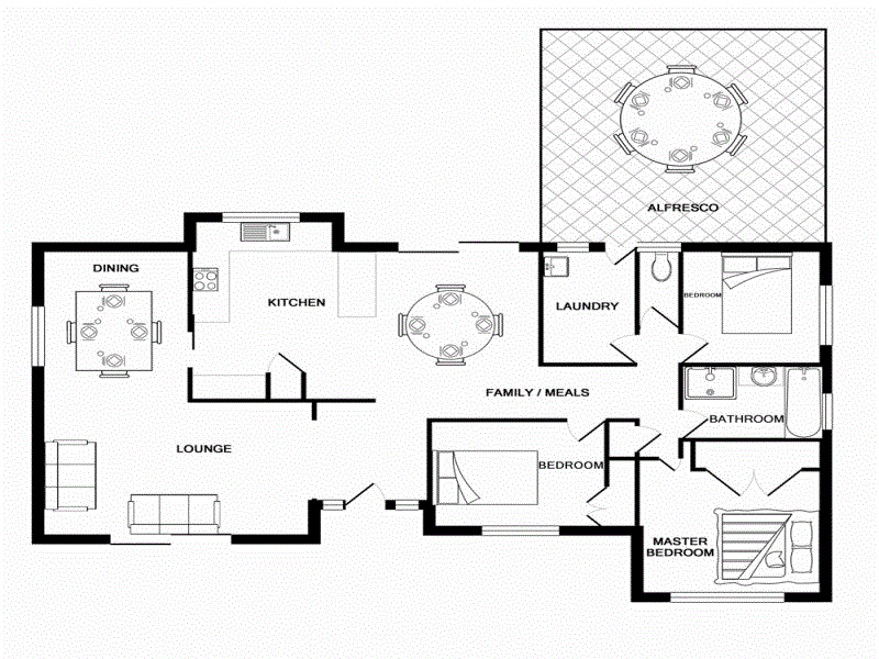 The stylish bathroom is a lovely surprise and tastefully done – with deep bath, shower & vanity. So too is the laundry – with glass splash back and plenty of storage. There’s also a separate loo too.