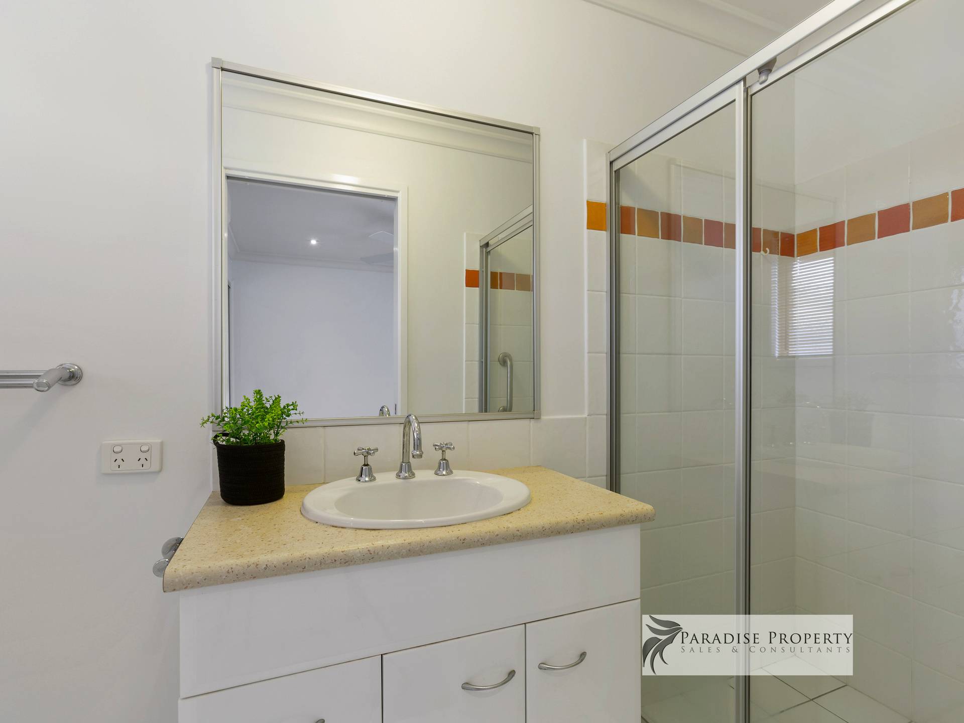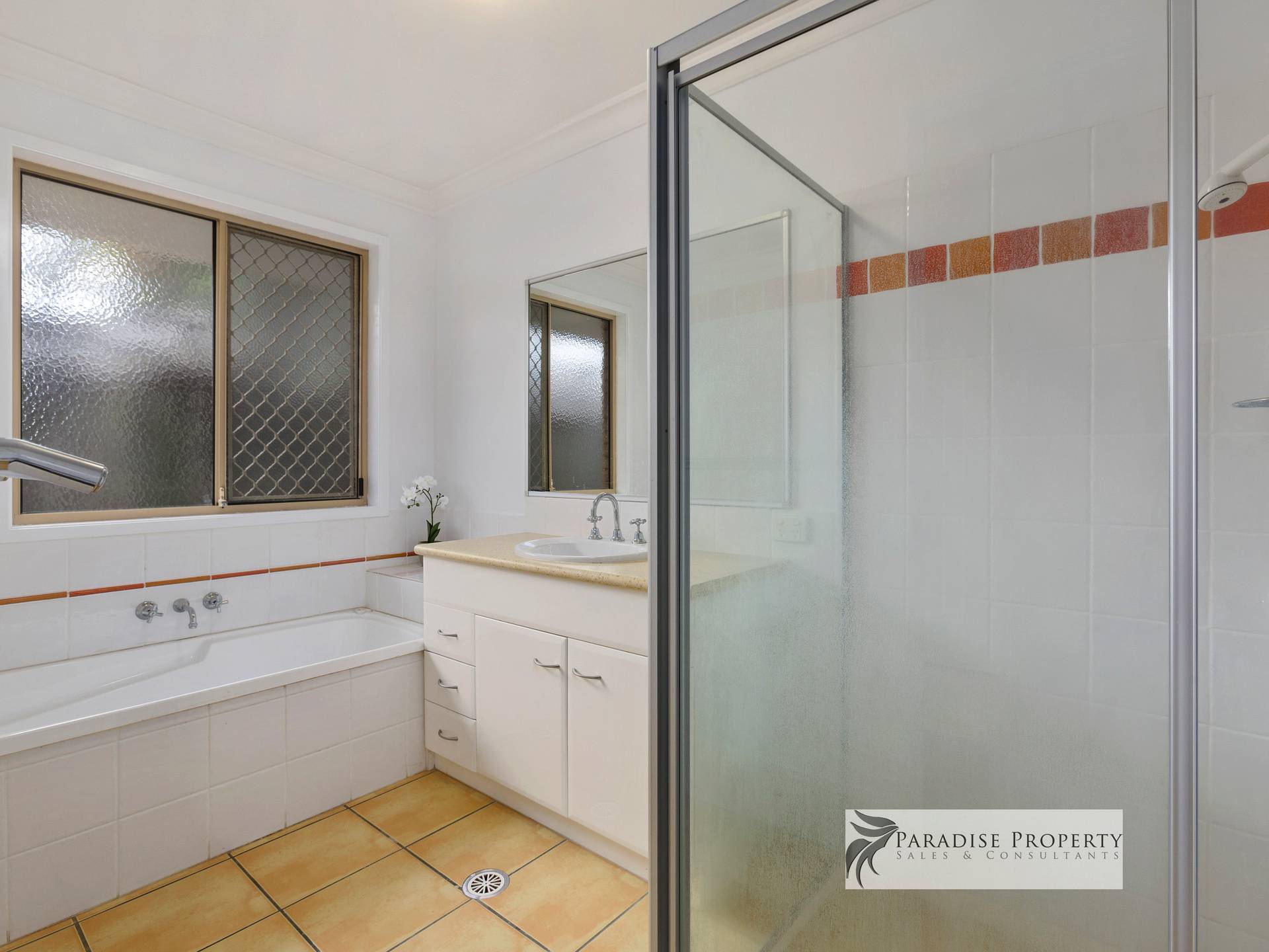 With 4 bedrooms (all with built-in robes + new ceiling fans) – the air-conditioned master bedroom is at the back of the house for extra privacy, with its own en-suite + separate access outdoors.