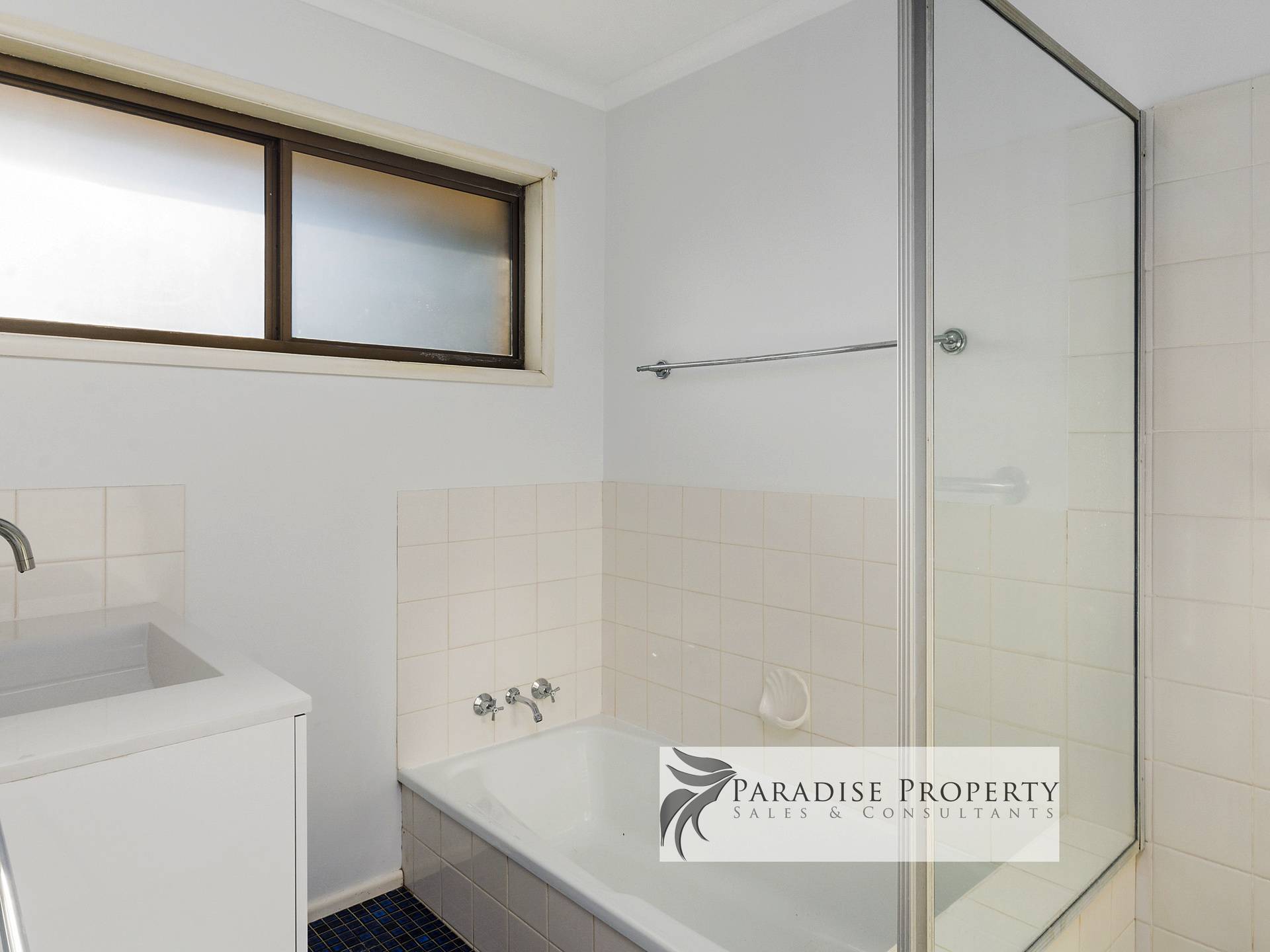 • Bathroom with bath, shower and new vanity + separate toilet.