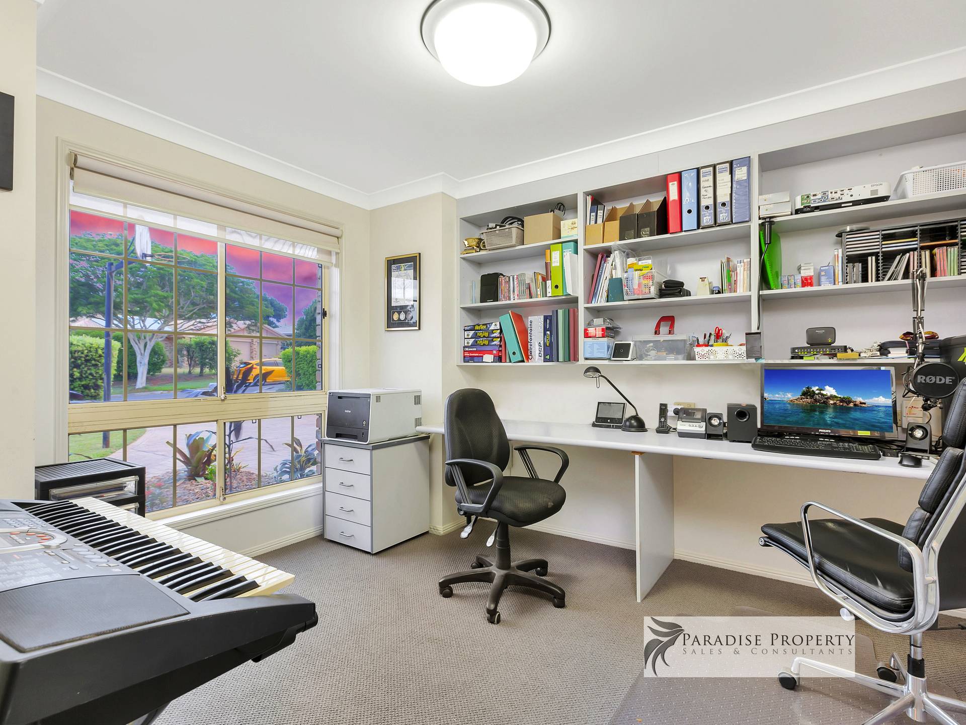 Completing the downstairs living is a big study/home office; full bathroom (with shower, vanity + toilet); big laundry with Robinhood ironing centre and loads of bench/cupboard space; double remote garage with internal access; and a nice flat, wide driveway for easy access.