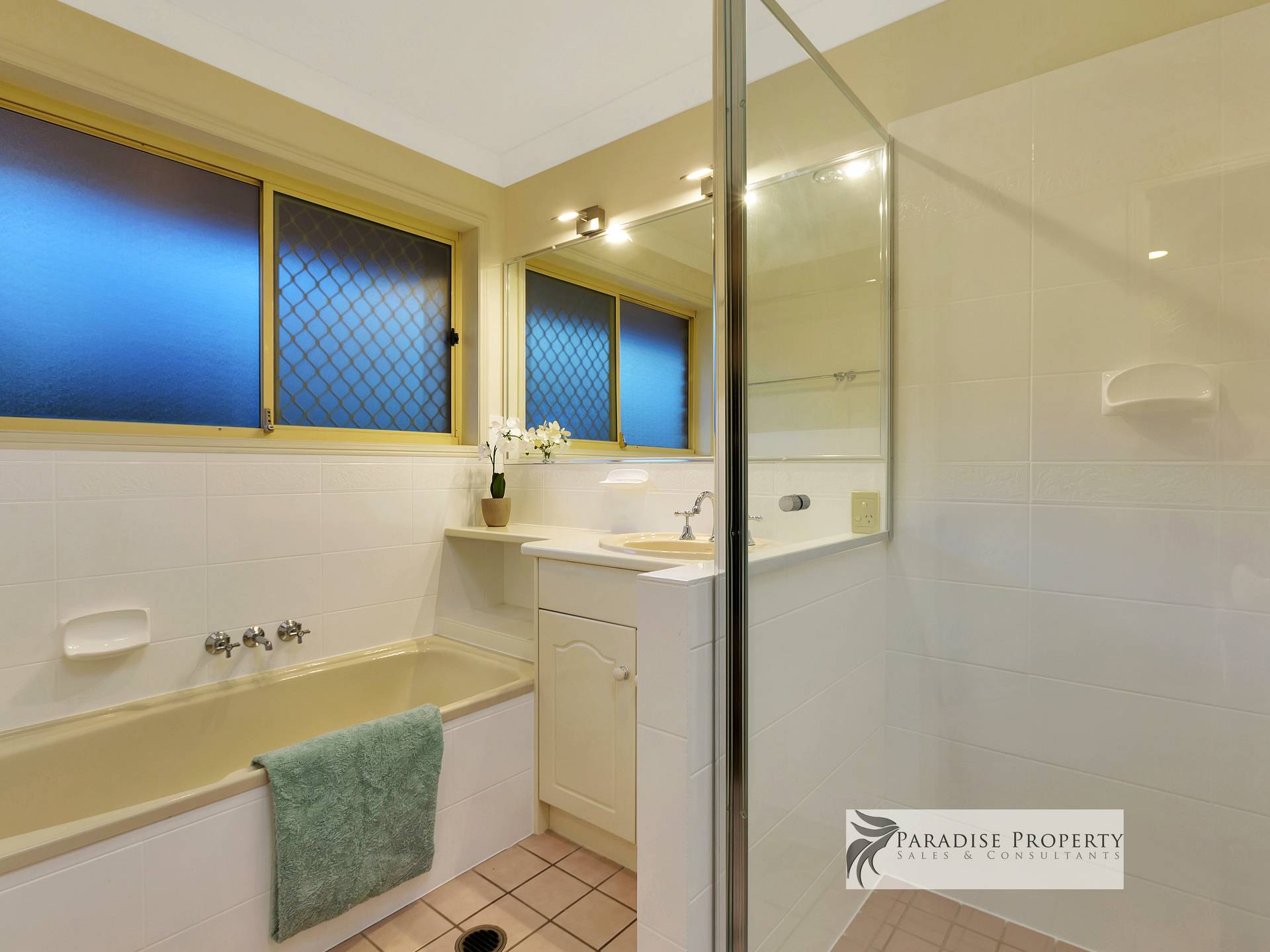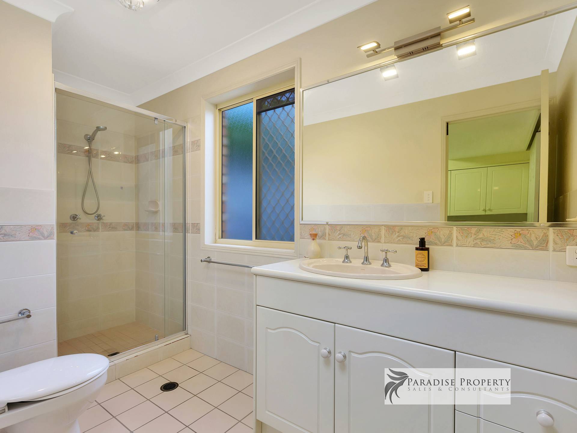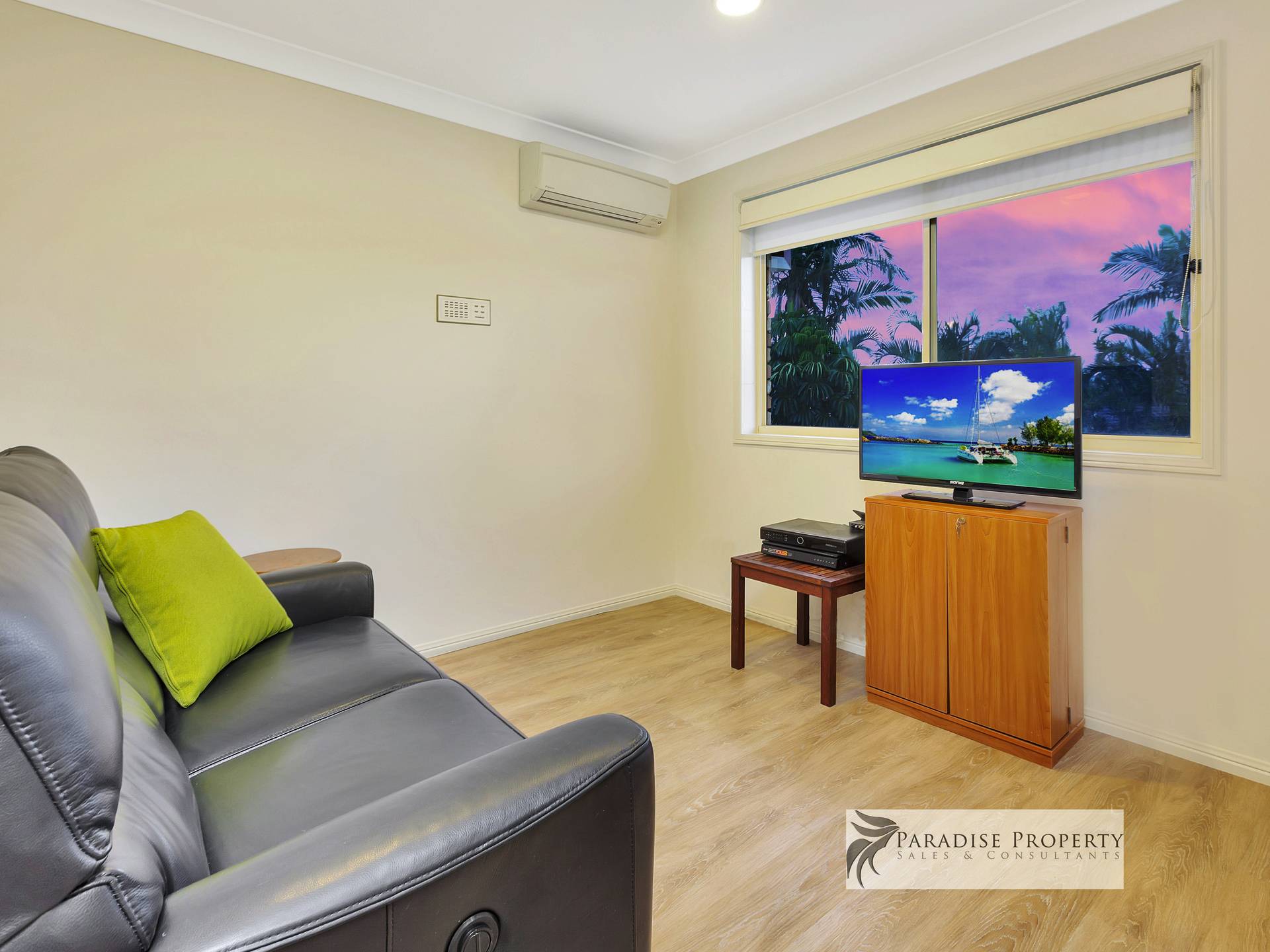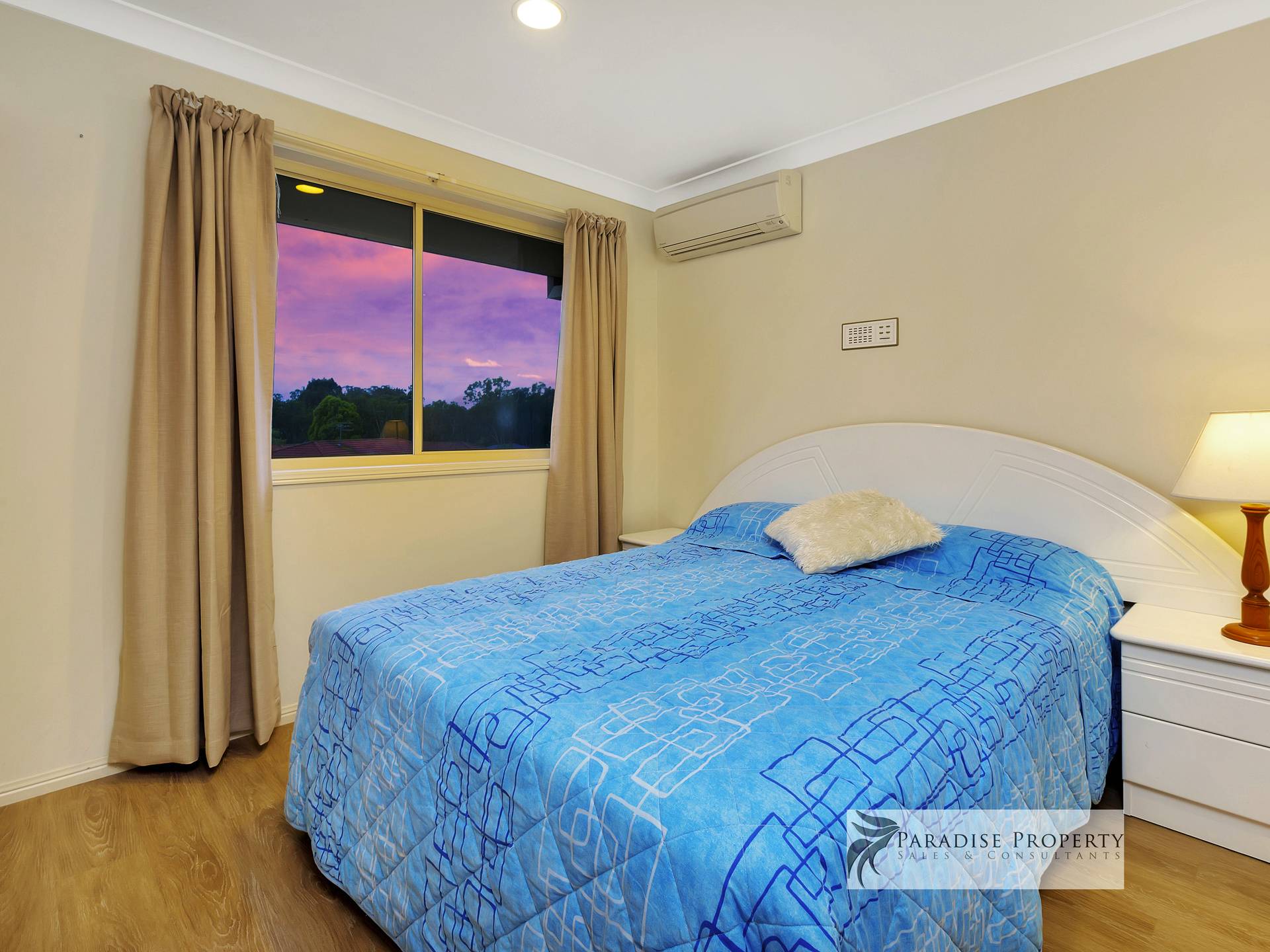 Upstairs you’ll find 4 generously sized air-conditioned bedrooms (each with BIR + allergy-free vinyl planking) – including the huge master bedroom with parent’s retreat/dressing room, WIR, extra wardrobe space + big en-suite with bath, shower, toilet + vanity. There’s also a good-sized main bathroom (with bath, shower + vanity) and a separate toilet too.