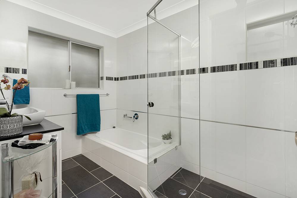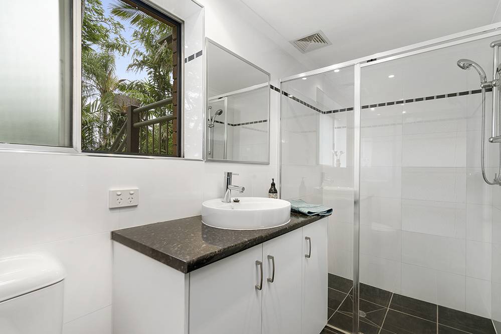 There’s a stylish renovated bathroom with floor-to-ceiling tiles, big shower, vanity and toilet; a separate laundry with plenty of bench / cupboard space that could easily be transformed into a kitchenette; and an extended raised patio / deck for outdoor entertaining.