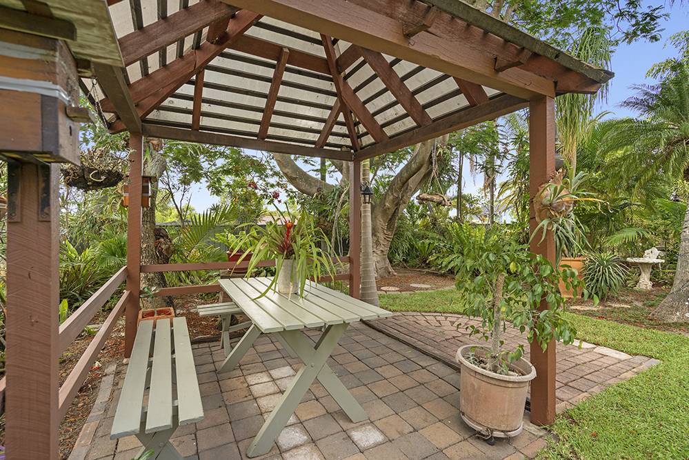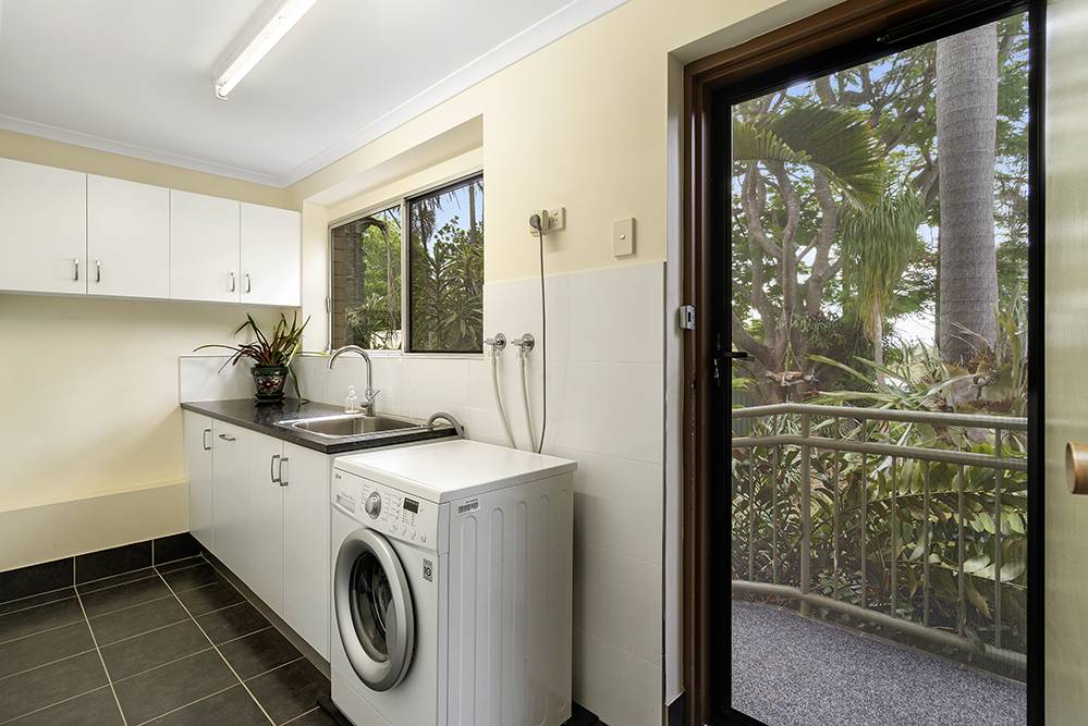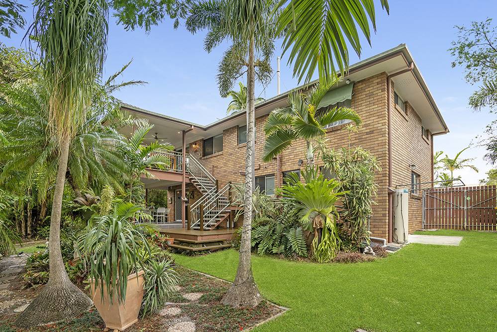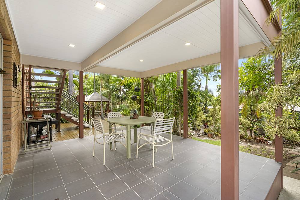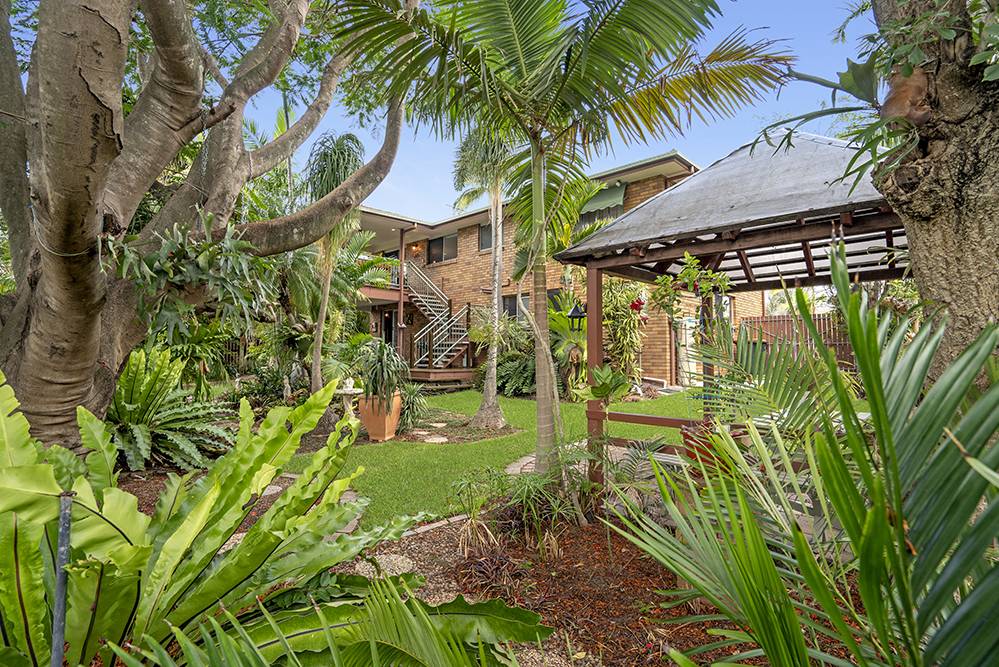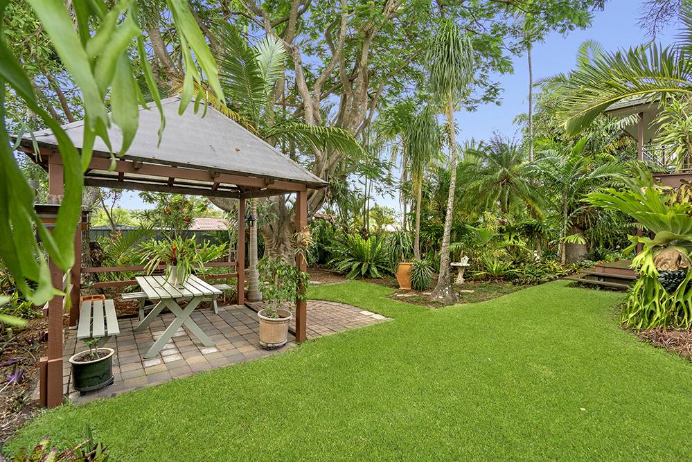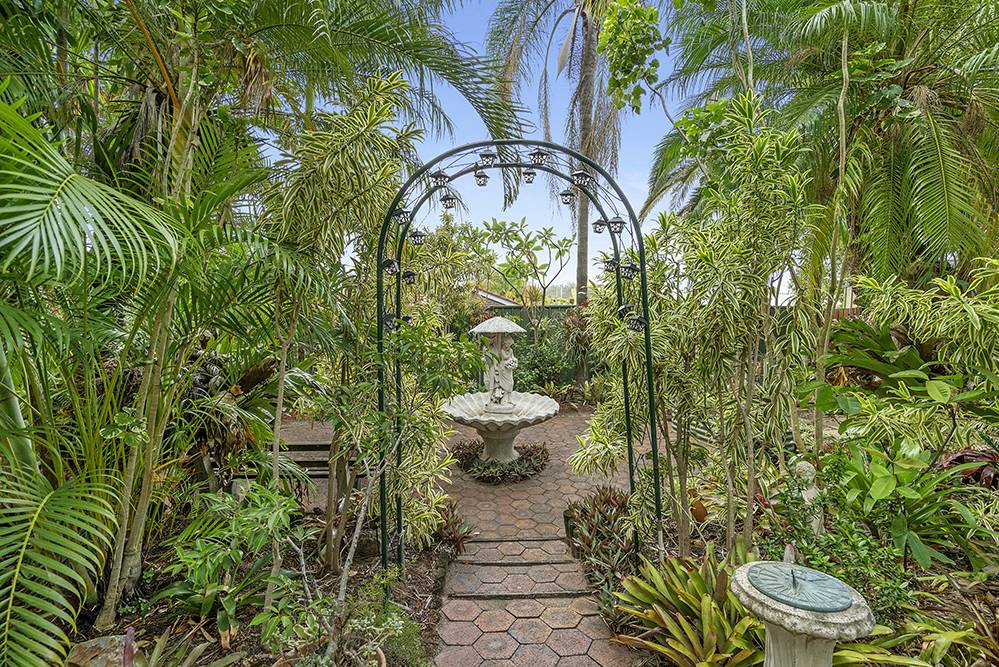 The beautiful back garden is a sub-tropical paradise – full of tropical palms, elkhorns, staghorns, bromeliads and ferns – with a majestic Royal Poinciana as its centrepiece. A magnificent garden sanctuary that takes your breath away, where thoughts wander and time passes you by.