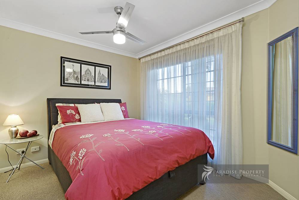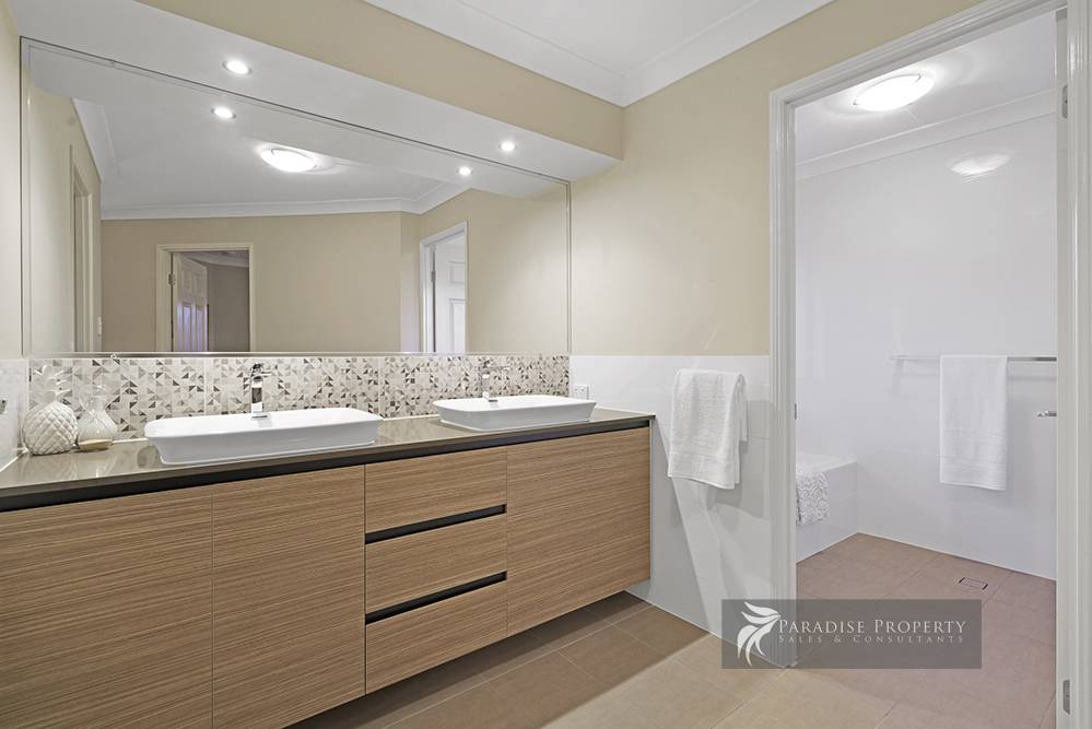 The other 3 bedrooms each have built-in robes + ceiling fans and are serviced by a similarly new high spec bathroom with bath and shower, twin vanity + separate toilet. Plus, the upstairs living room makes for an ideal teenage retreat, enabling the kids to chill out in their own space, out of sight and out of mind.