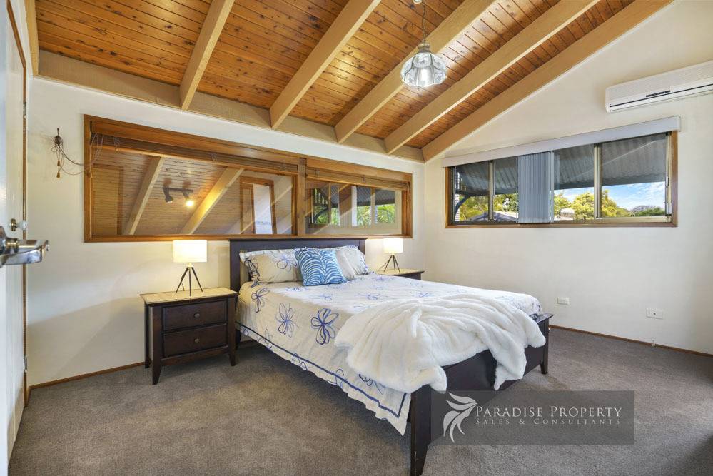 Upstairs you’ll find 4 good-sized bedrooms – all with fresh new carpet and built-in robes, and ceiling fans in 3. Plus, the spacious air-conditioned master bedroom has a striking raked ceiling and feature windows too. All with convenient access to a 2-way bathroom and separate toilet.