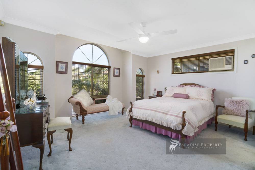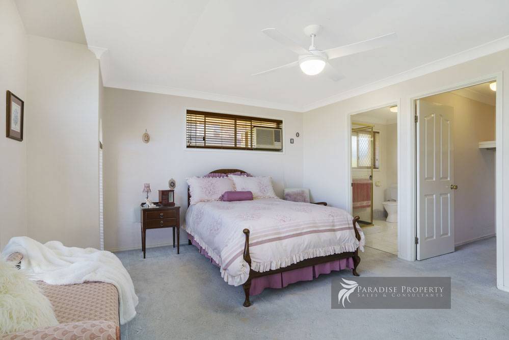 Offering 4 big bedrooms with built-in robes + ceiling fans – including spacious air-conditioned master suite at the front of the home with beautiful feature windows, sitting area, walk-in robe + en-suite.