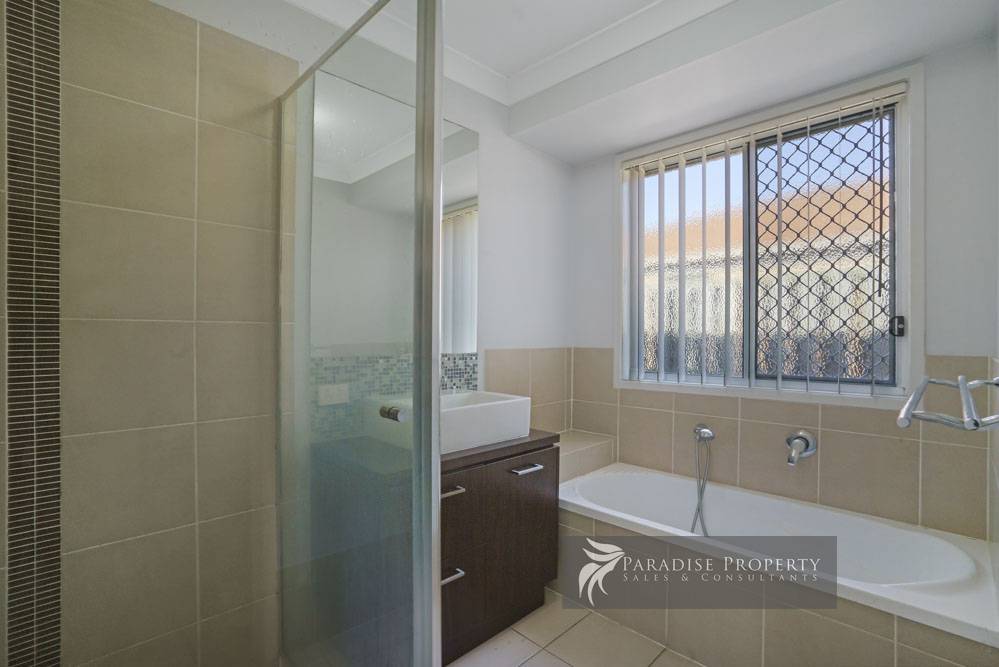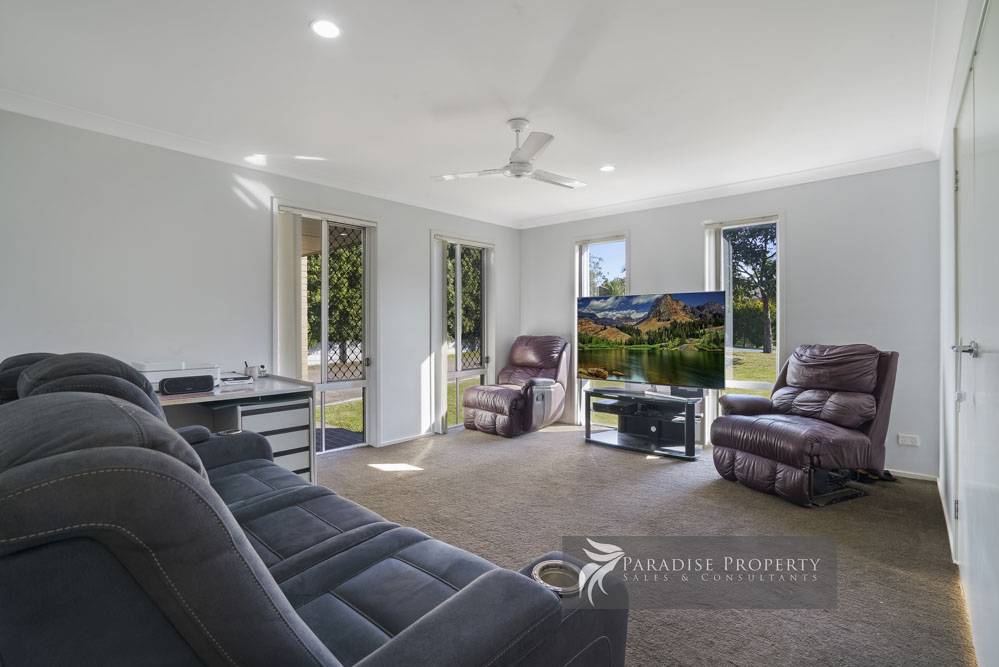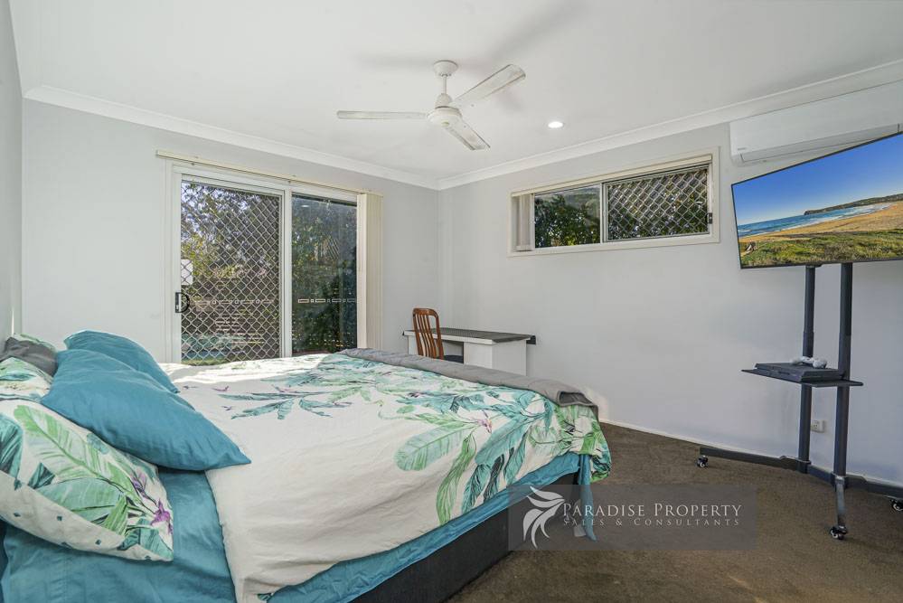 With 4 bedrooms—all with built-ins + ceiling fans – the air-conditioned master has its own en-suite and walk-in robe, plus separate access outdoors.