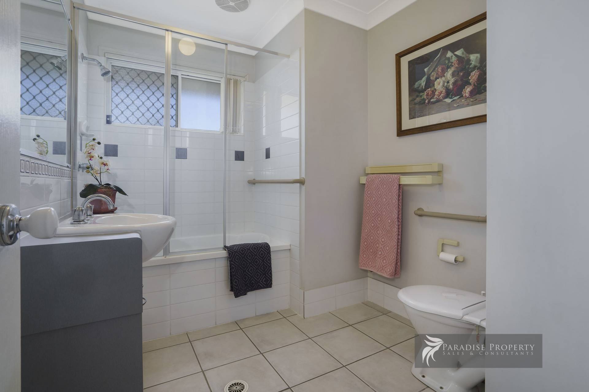 *Main bathroom with bath/shower, vanity & toilet