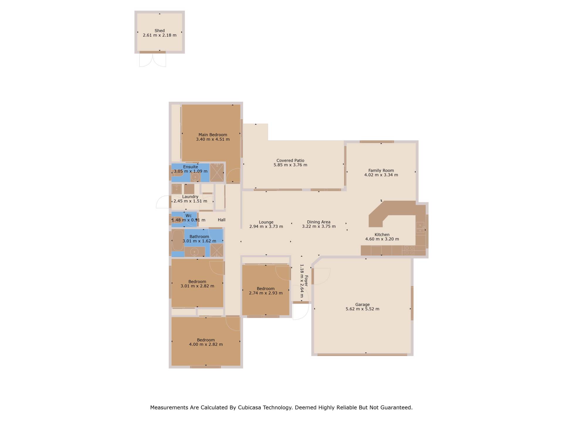 With 4 bedrooms - 2 of them King Size, all with built-in robes, 2 with aircon, and 3 with ceiling fans – the air-conditioned main bedroom is at the back of the house for extra privacy, with its own en-suite and separate access outdoors. The other bedrooms share a generous main bathroom with bath + shower and separate toilet.