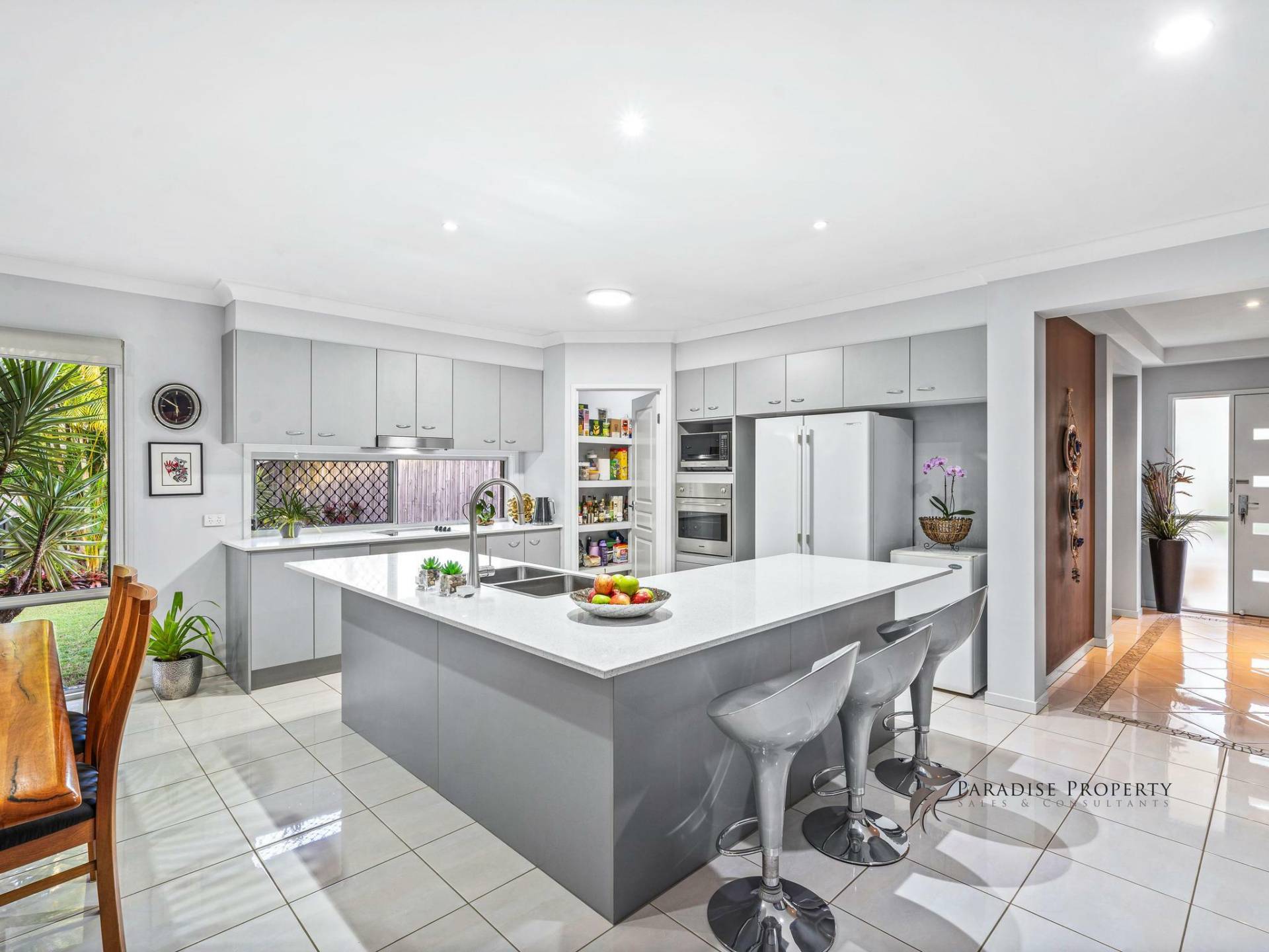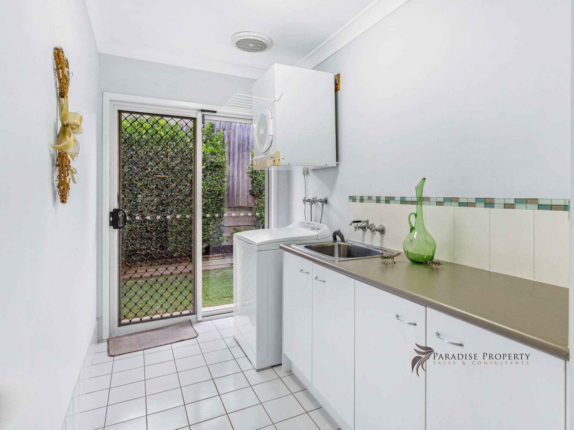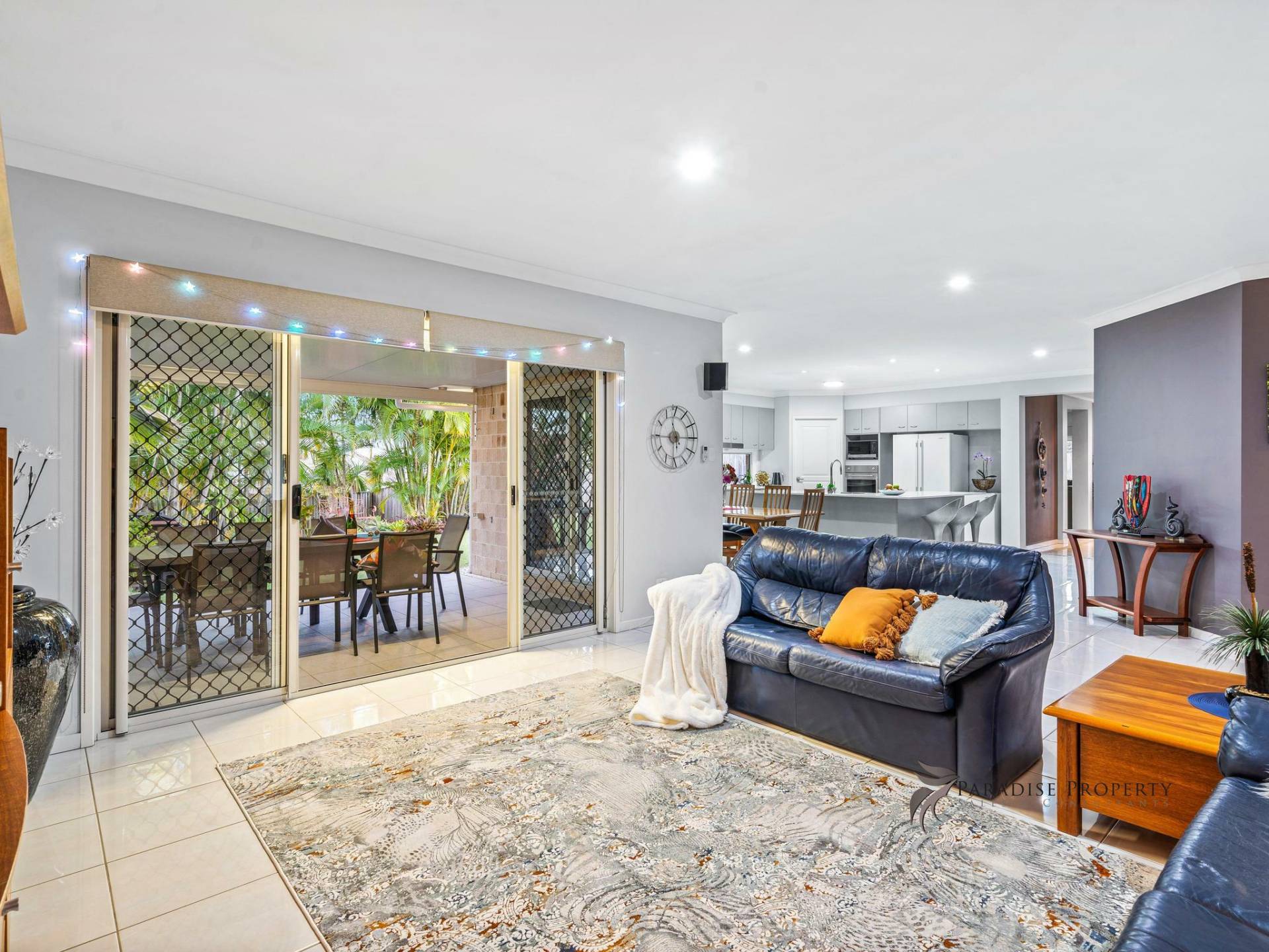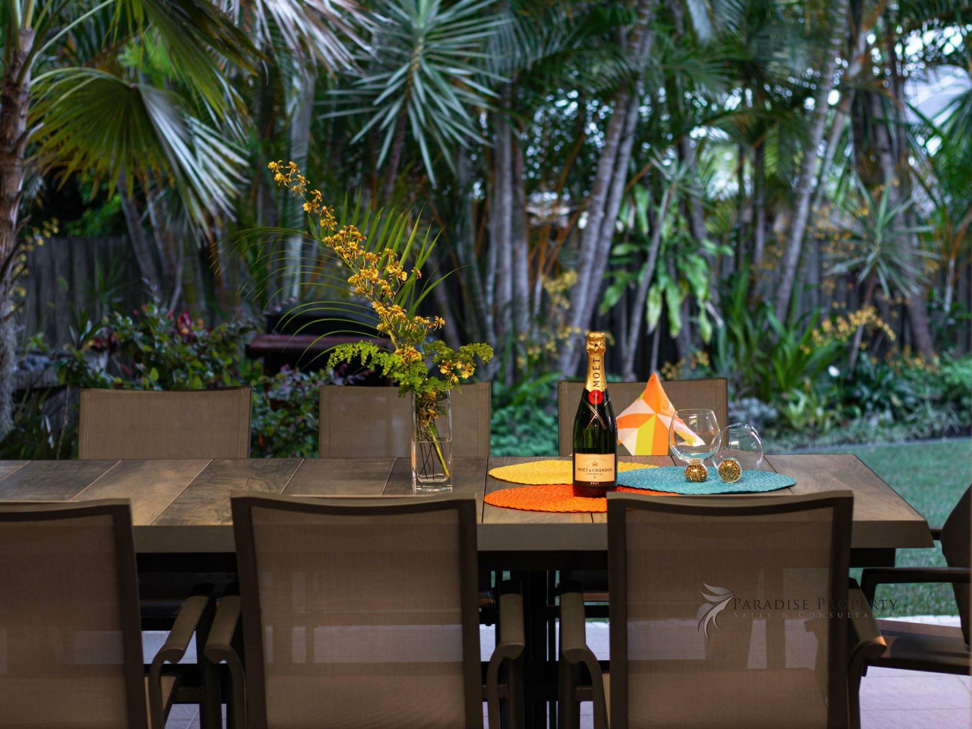 Enjoy al fresco dining and summer BBQs under the insulated patio overlooking a vibrant easy-care garden abundant with well-established tropical palms and lush green lawn; offering plenty of room for the kids to play safely and chase the dog in the fully fenced backyard.