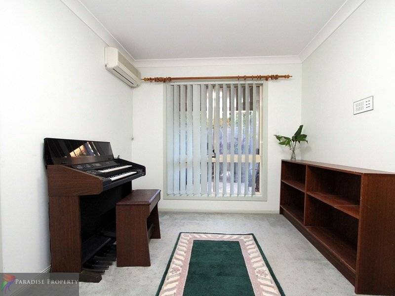 The air-conditioned downstairs 5th bedroom/study has a BIR and direct access to a 2-way bathroom with vanity, toilet + shower – making it the ideal office for a home-based business or spare bedroom for guests or extended family staying over. It’s also ideal for elderly parents who find stairs a challenge.