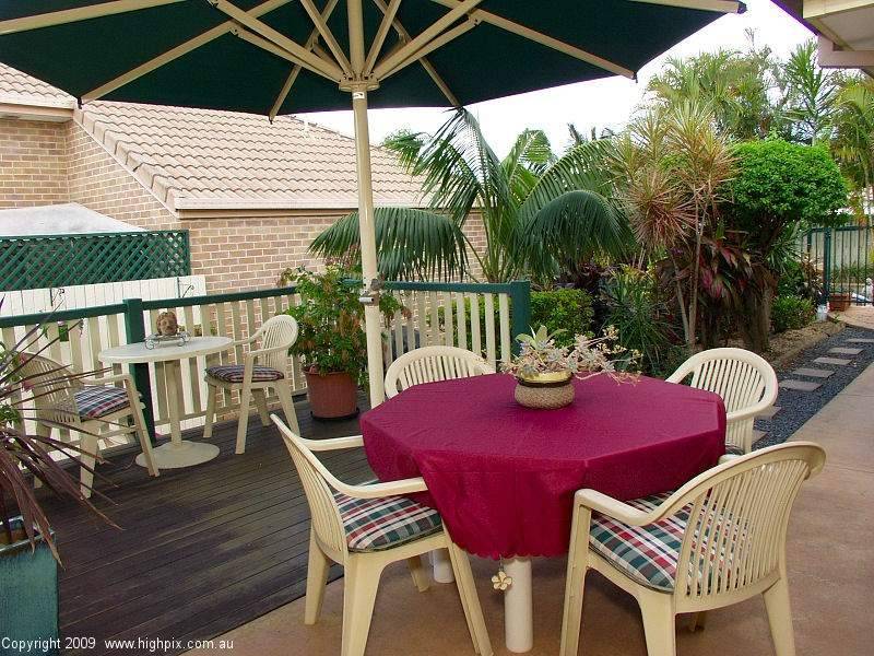 Additional features include: security screens and windows throughout; huge market umbrella; 5,500 litre water tank (plumbed to toilet) + pump; garden shed; flag pole; and single remote garage.